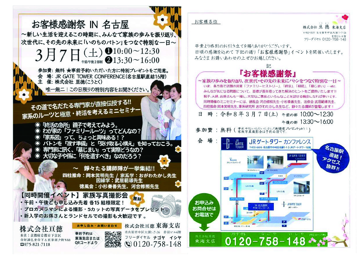 相談会の開催日時の追加や、株式会社亘徳からのご連絡事項をお伝えいたします。
